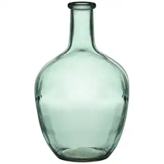 A clear glass organic vase to complement the home, featuring traditional period design with a subtle green tone for a touch of antiquity.