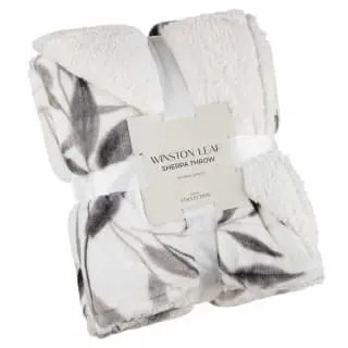 Keep warm and wrap up for less with this Winston Mono Leaf Sherpa Throw.